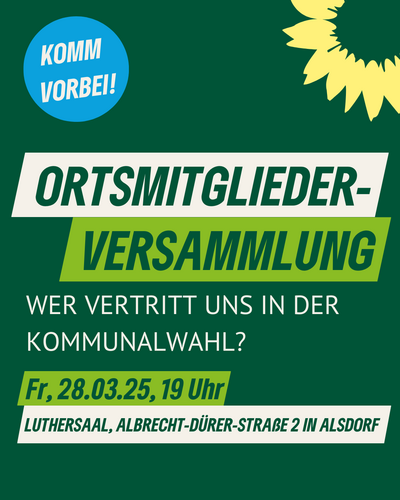 Ihr wollt ein lebenswertes, klimafreundliches und sozial gerechtes Alsdorf? Dann kommt zur Ortsmitgliederversammlung und gestaltet mit uns die Zukunft…